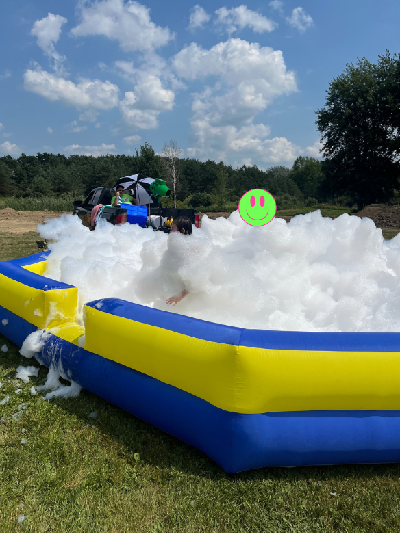 That inspired us to take matters into our own hands. We invested in a professional-grade foam cannon, a safe inflatable arena, vibrant foam colors, and black lights to create a fun, safe, and exciting environment for both kids and adults.